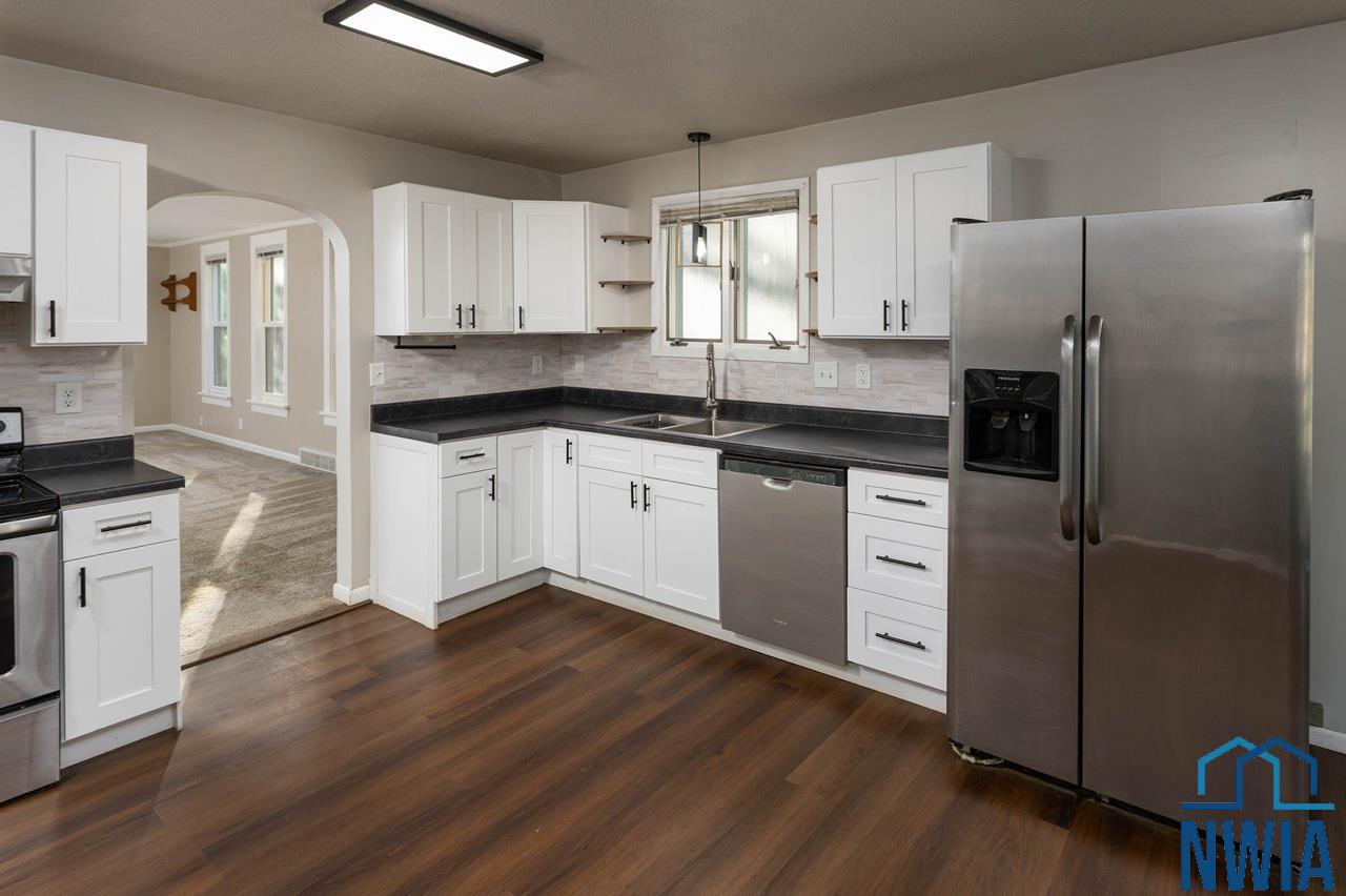 Charming, Updated Bungalow Ready to Welcome You Home! Fall in love with this adorable 2-bedroom, 1-bath home in the heart of Mapleton! Bursting with charm and filled with natural light, this move-in ready bungalow offers both comfort and style. Step inside the inviting four-season porch—perfect for morning coffee or relaxing with a good book. The spacious living room flows easily into the 2 bedrooms and full bath, making the layout both functional and cozy. The bright eat-in kitchen is a showstopper with crisp white cabinets, sleek black hardware, stainless steel appliances, and sliding glass doors that open to your private fenced backyard. Just off the kitchen, you’ll find the convenience of main-level laundry—no hauling baskets up or down stairs! Outside, enjoy the deck and pergola—a perfect spot for dining, entertaining, or just unwinding. Throughout the home, you’ll find sleek, modern lighting fixtures that give every space an elevated feel. Outside, mature maple trees provide shade, while vinyl siding ensures low maintenance and off-street parking adds convenience. With numerous updates already completed, all that’s left to do is move in and start enjoying! Don’t miss your chance to make this charming bungalow yours!